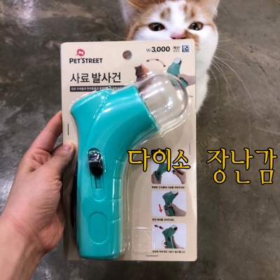빠른 반응을 보이는 고양이라면 추천! 날아가는게 멀리 휵 날라가서 좋긴해요. 단, 레버눌러서 날려줄때 뻑뻑해서 손가락이 아프긴 하더라구요. 저처럼 간식을 한개씩 날려주는 분들은 호불호가 확 갈릴것 같더라구요! 그래서 저는 뱅갈고양이를 키우시는 지인분께 넘겨드렸는데 매우 잘 사용중이라고 하시더라구요! 한번쯤은 사볼만한데 자주 사용하게는 안되는 다이소 장난감 후기였습니다!