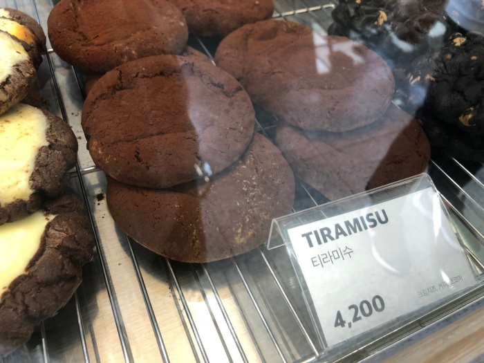 뭔가 시꺼매서 머지 싶었지만 민트초코라는 말에 그냥 믿고 구매하는 쿠키! 그렇게 저는 민트초코와 레드벨벳크림치즈 두개를 구매하고 친구는 티라미수와 레드벨벳크림치즈를 구매했습니다. 이렇게 4개 구매했는데...17400원!(ㅋㅋㅋㅋ)