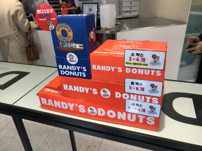 홍대,연남동 돌아다니다면 빨간 박스 들고 다니는 사람들이 많은데 다 요 랜디스 도넛에서 구매하신분들이더라구요. 늘 지나갈때마다 줄이 너무 길게 서있어서 포기했는데, 마음을 먹고 평일에 오픈시간 11시에 맞춰서 방문했습니다.